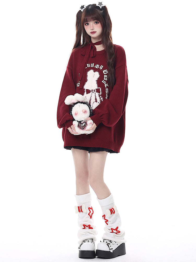 Christmas Style Black Red Lantern Sleeve Sweater