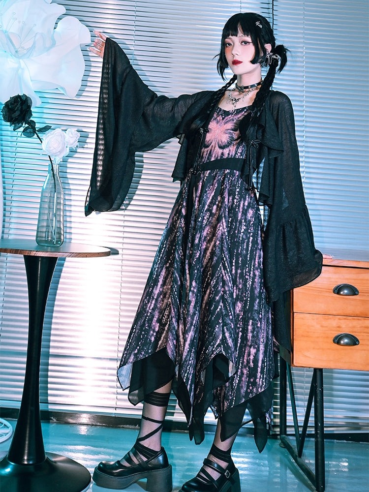 Butterfly Illusion Black Irregular Wide-Sleeve Sun Protection Cardigan