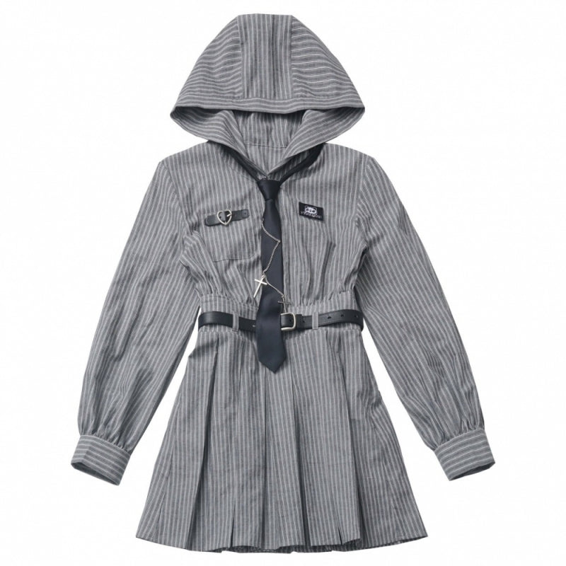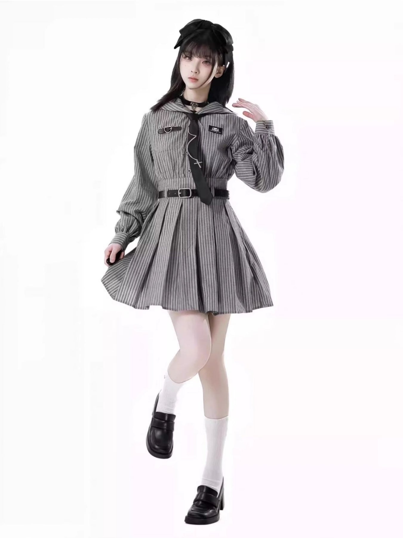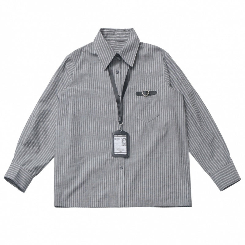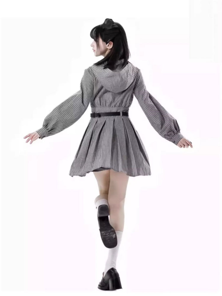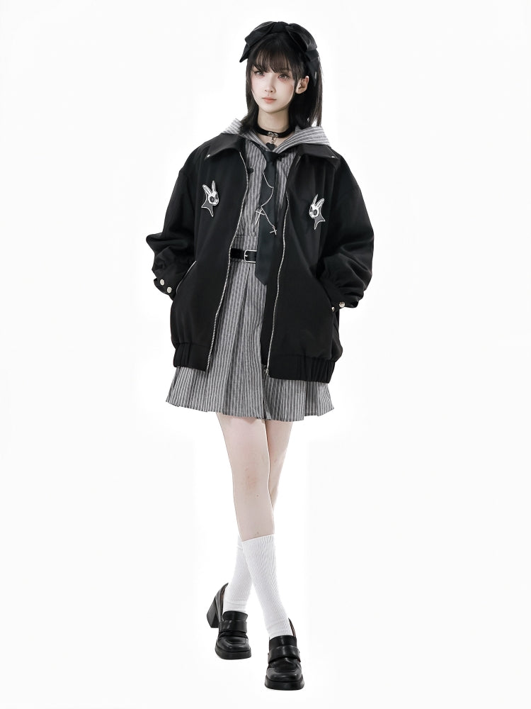 Edgy Striped Shirt / Dress / Black Jacket / Wide Leg Pants