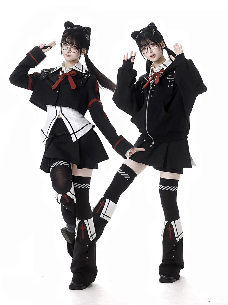 Gothic Schoolgirl Cropped Blazer / Shirt / Jacket / Skirt / Cross Leg Warmers