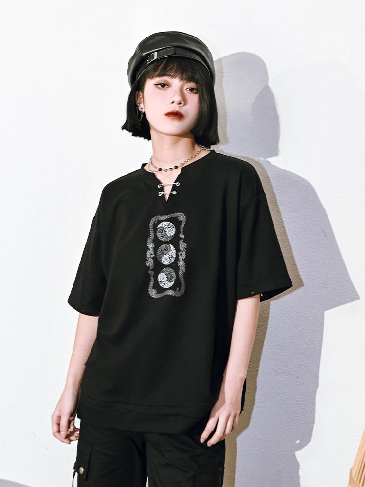 Trendy Chinese-style V-neck top with detachable long sleeves