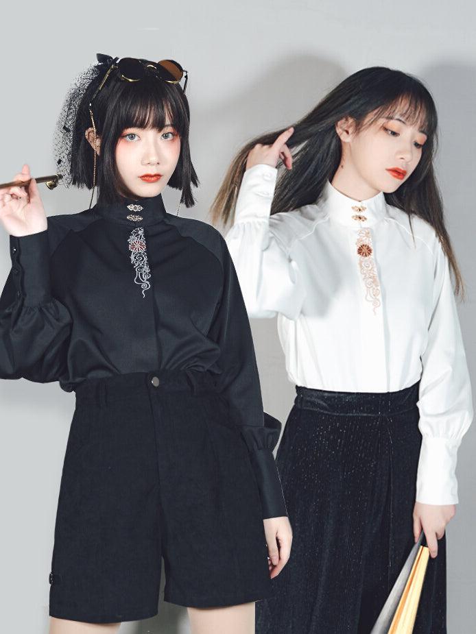 Chinese-style Han-inspired embroidered stand-collar shirt