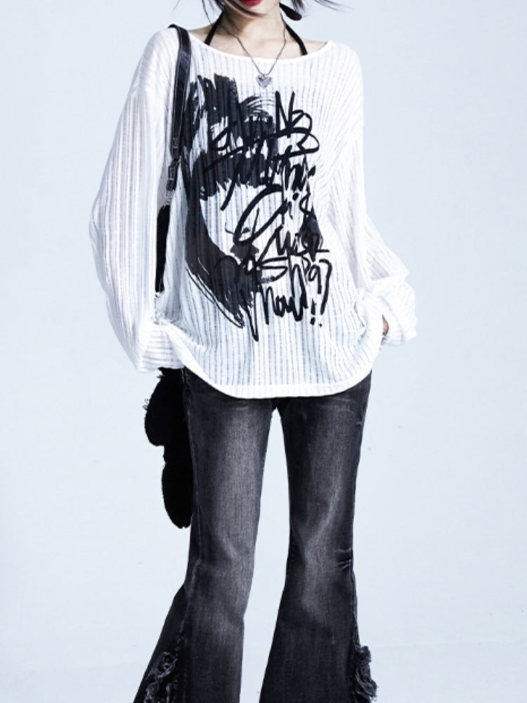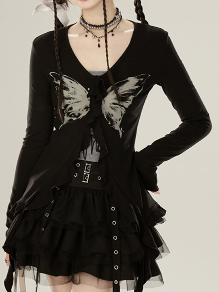 Butterfly Print Tie-Dye Off-Shoulder Loose Fit Lazy Chic Top for Early Spring