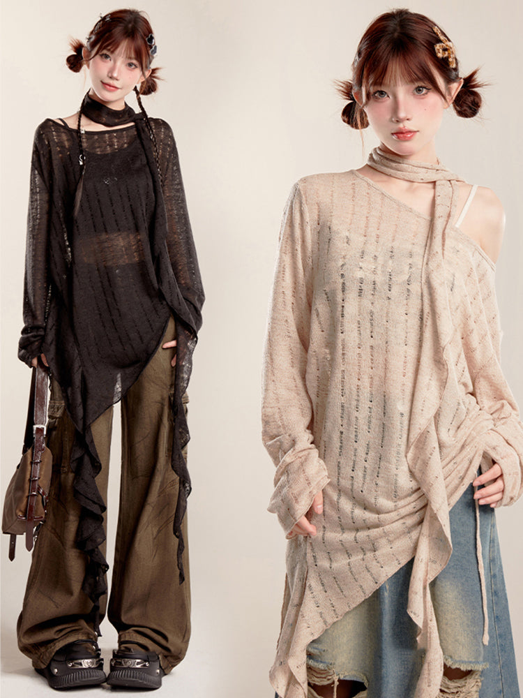 Black/Beige Long Sleeve Knitted Sun Protection Cardigan Summer
