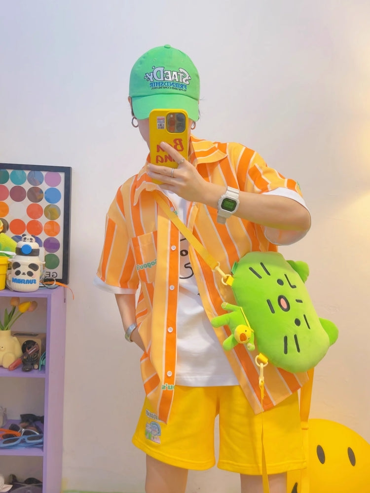 American Style Yellow Vertical Striped Short-Sleeve Shirt