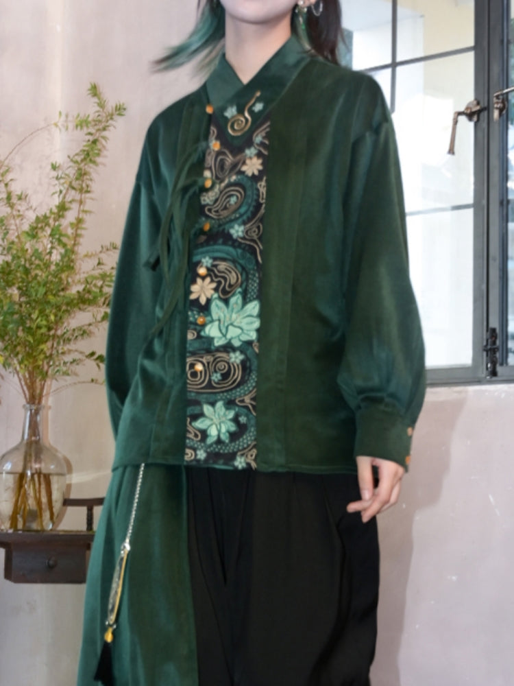 Green Top with Chinese-Style Embroidery