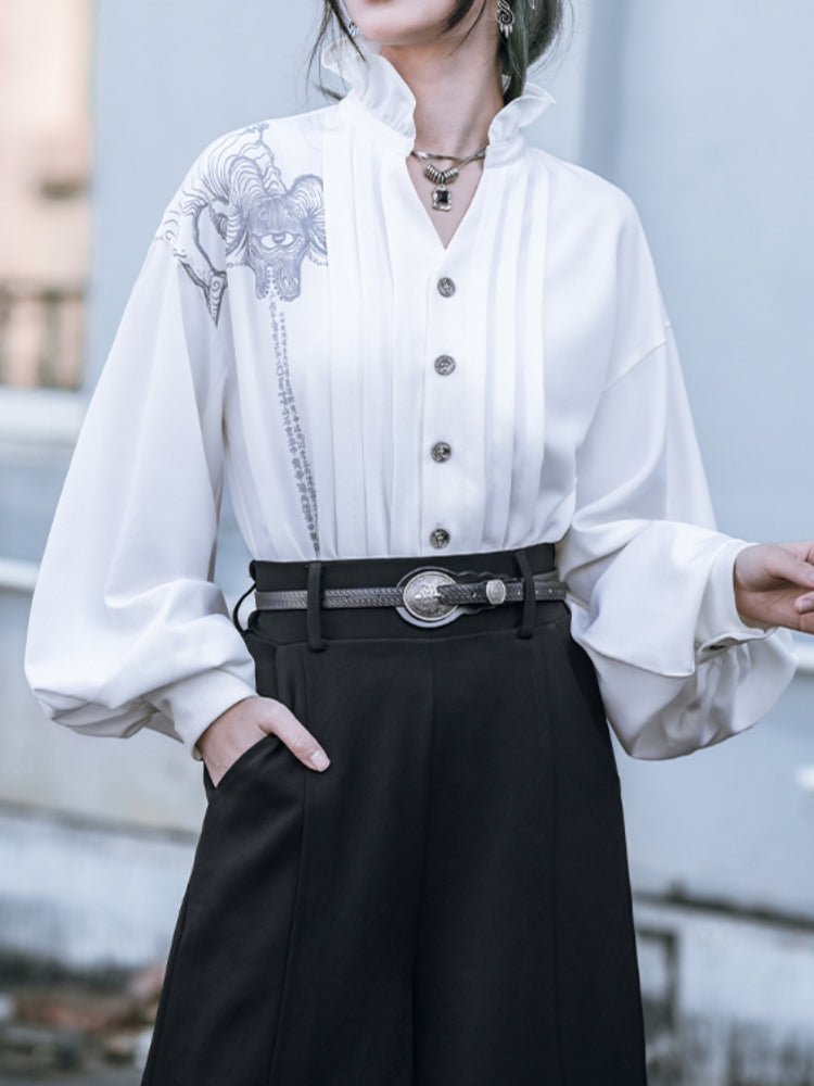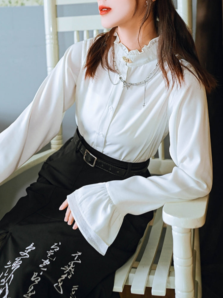 lantern sleeves and double-layer collar White shirt