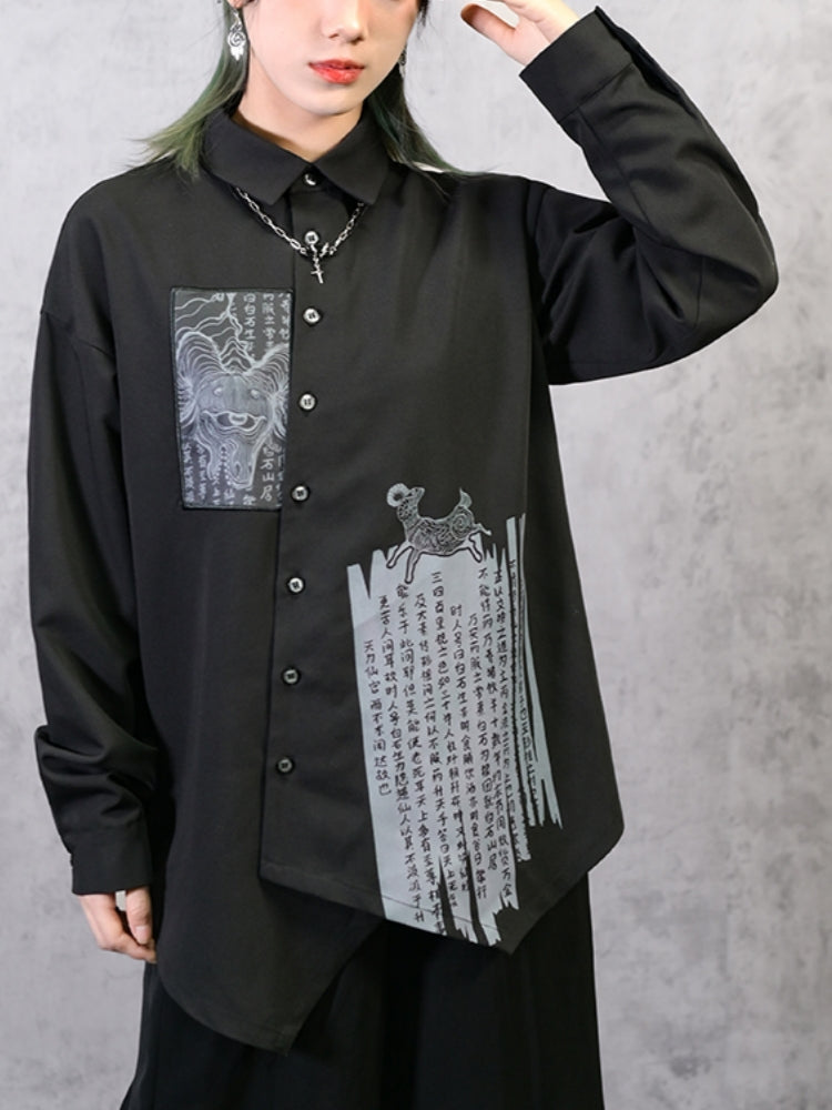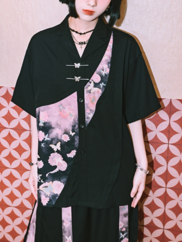 Artistic Patchwork Printed Chinese-Style Shirt