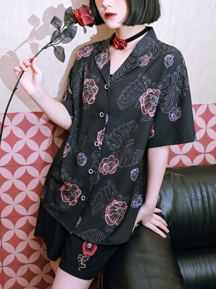 Black White Vintage Loose Short-Sleeve Shirt