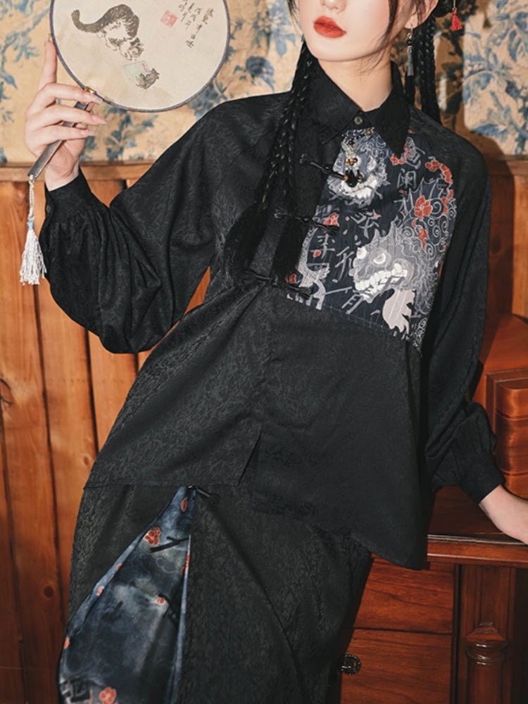 Black Chinese Style Loose Long-Sleeve Shirt