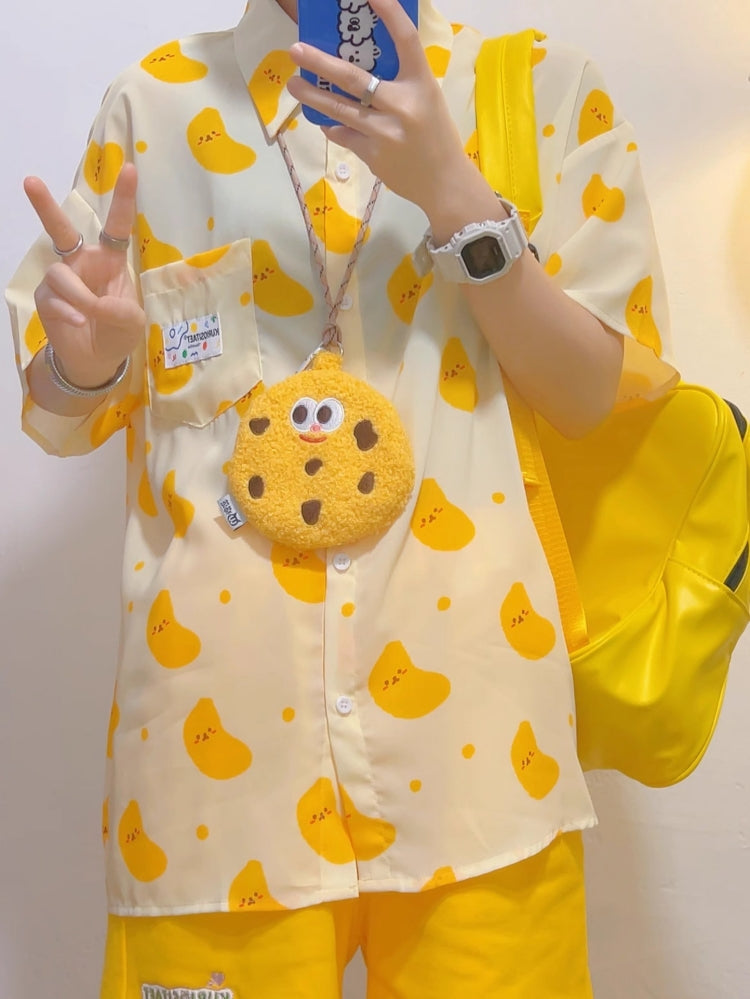 Yellow Chiffon Short-Sleeve Shirt for Summer