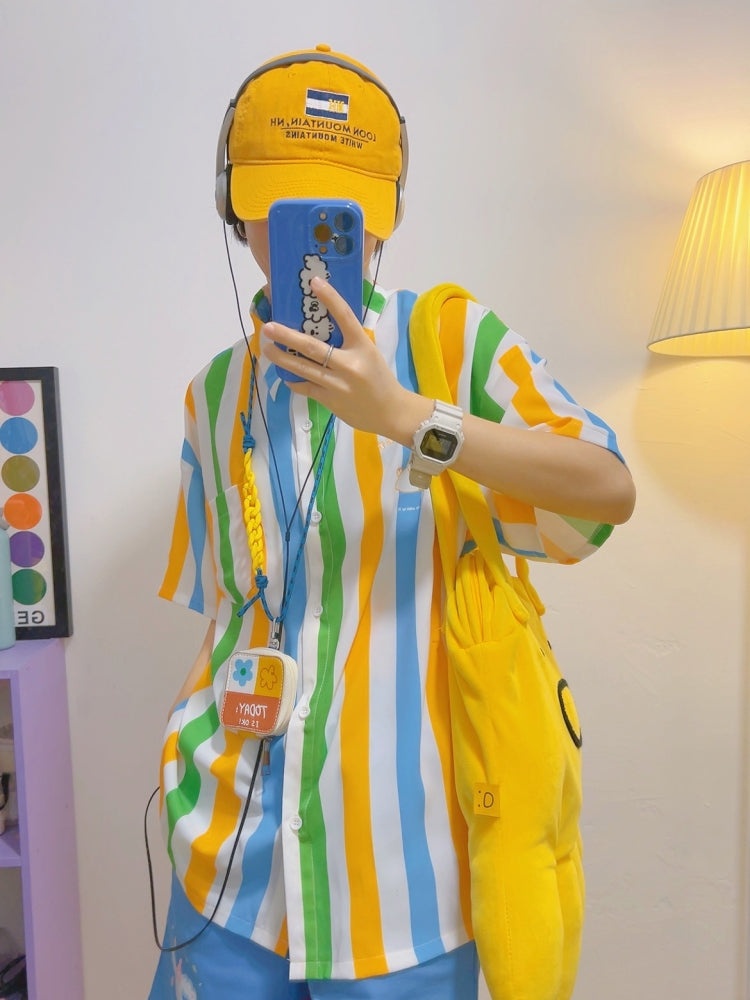 Japanese-Style Yellow Vertical Striped Shirt