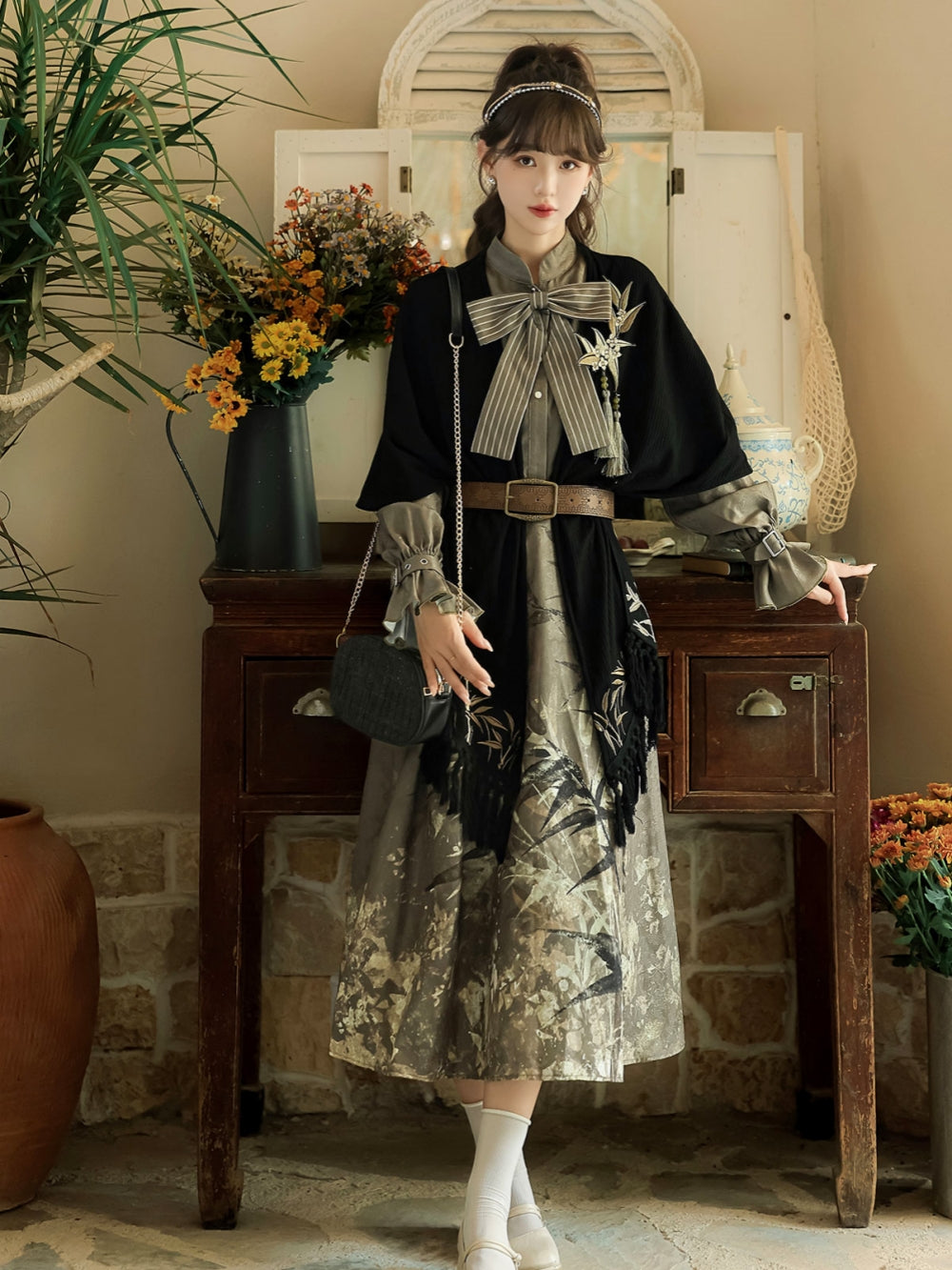 [ Gilded Bamboo Shadows ] Han-inspired Cape & Dress Ensemble