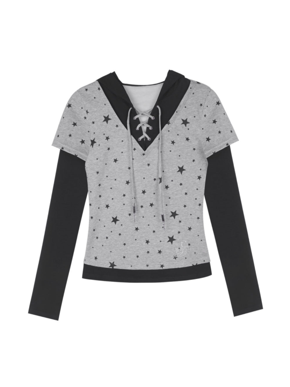 False Two-Layer Star Print Hooded Top