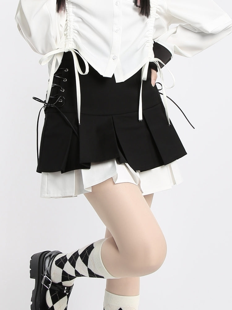 Double-Layer Colorblock Tie-Up Skirt