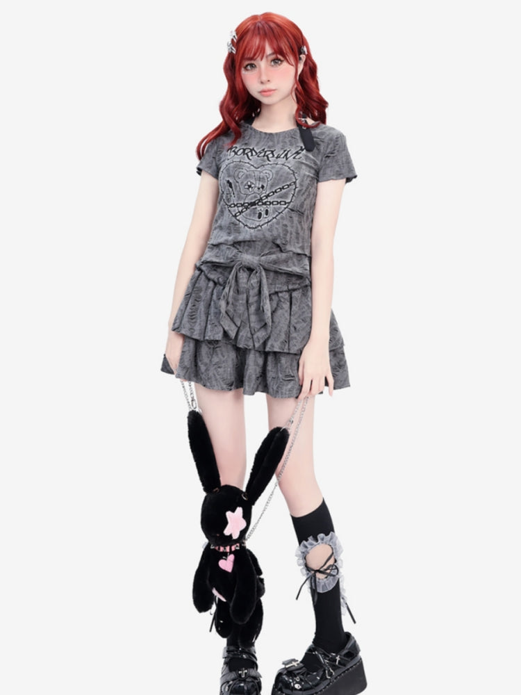 Bow Tie Distressed Wasteland Style Double-Layered Cake Skirt