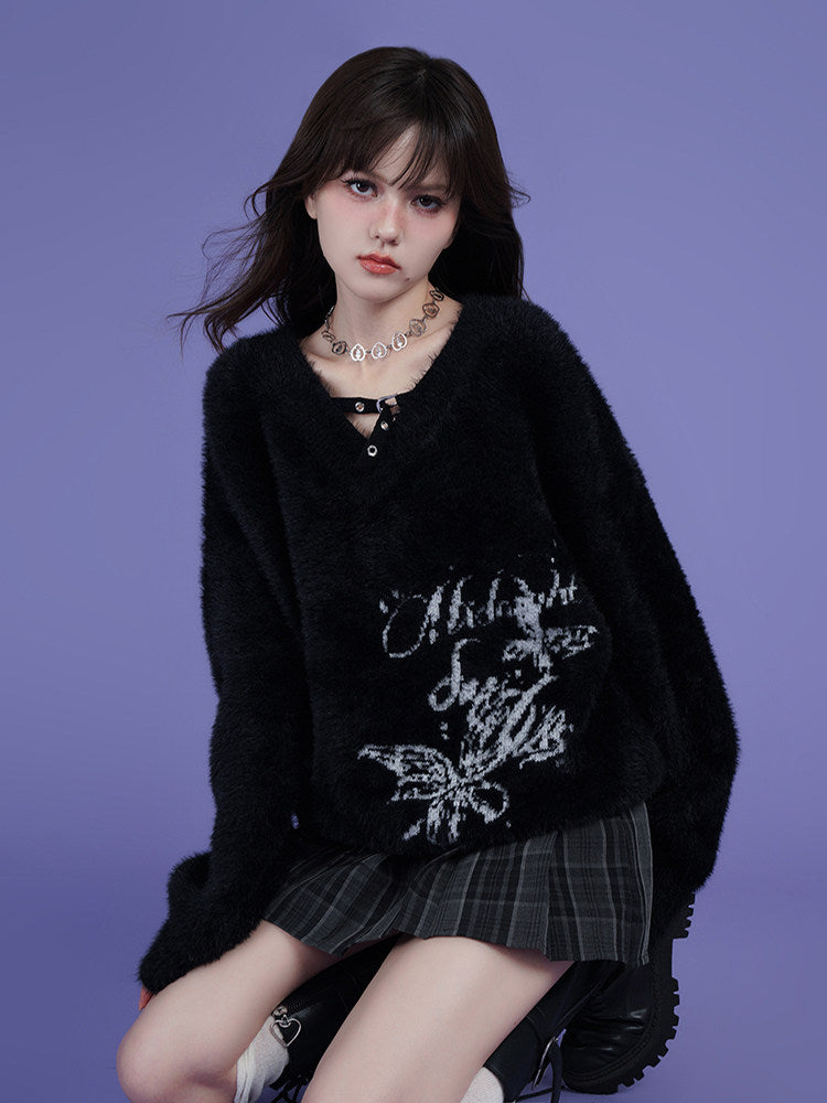 Butterfly Decor Mock Neck Autumn Winter Knit Sweater