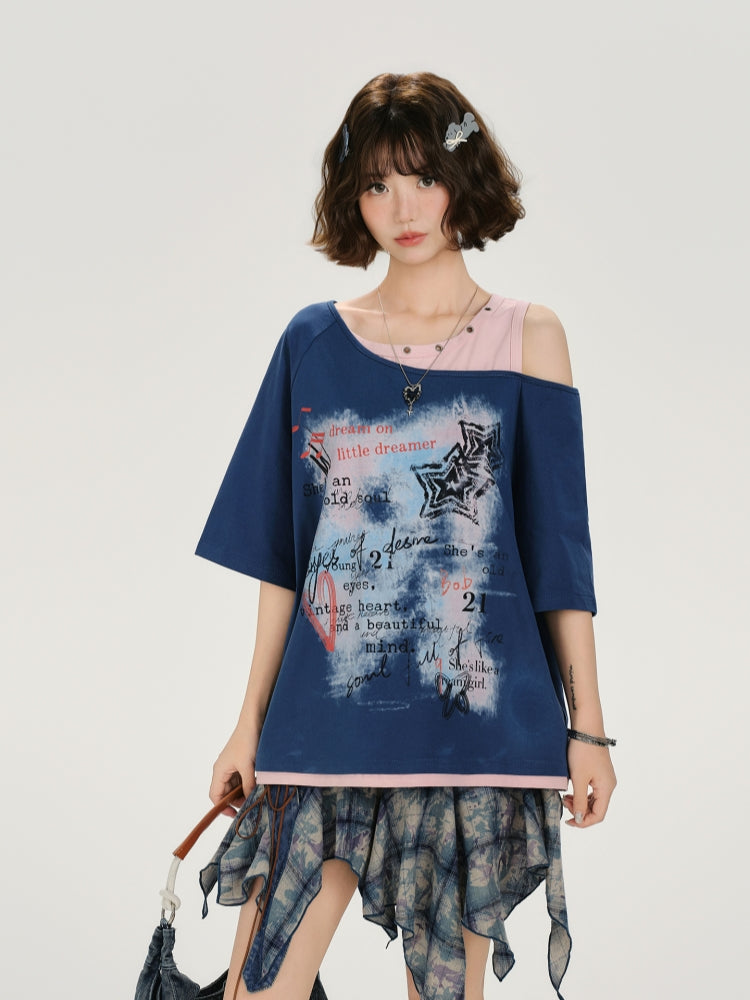 Cute Asymmetrical Letter Graphic Top