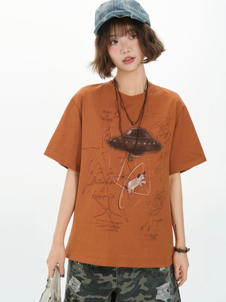 Soft Pastel Colors Graphic Print Loose Fit Summer T-Shirts