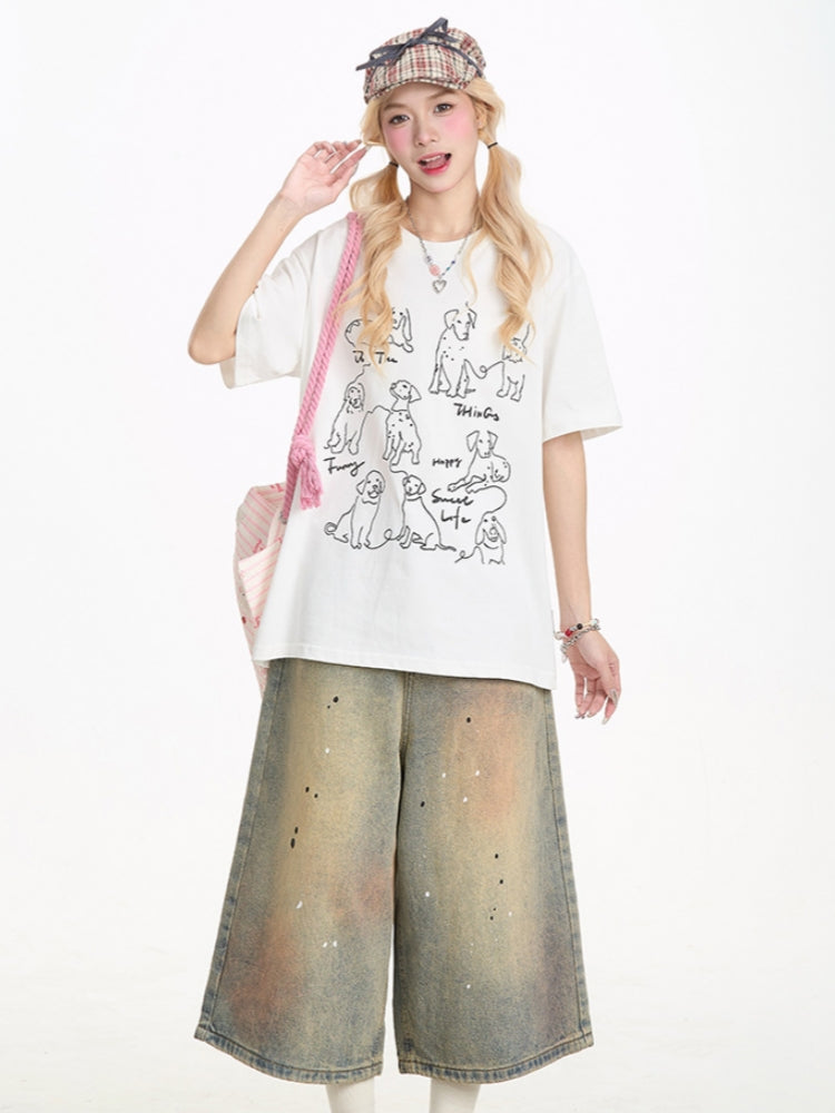 Dog Print Summer Short-Sleeve T-shirt