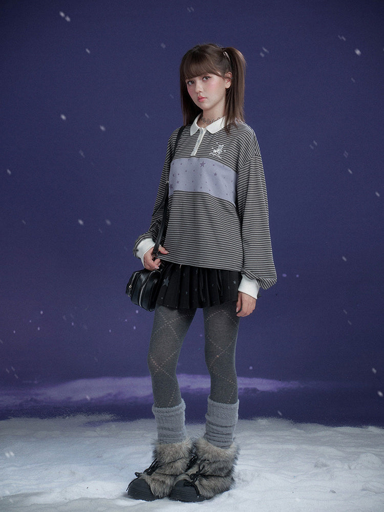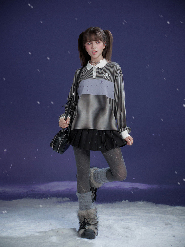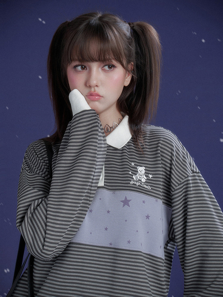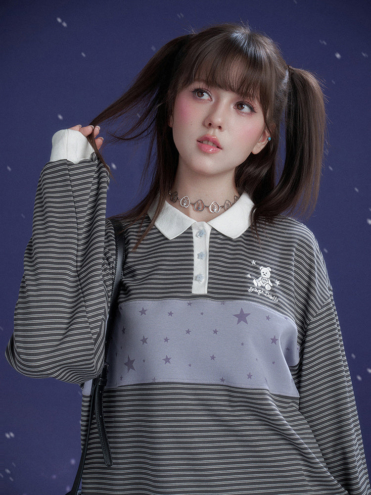 Preppy Striped Polo Top