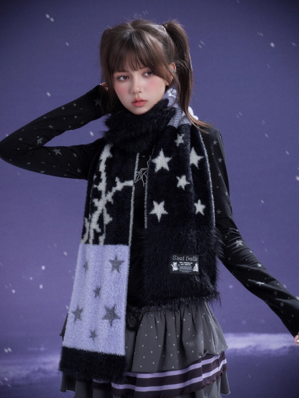 Star Pattern Faux Mink Fleece Winter Scarf