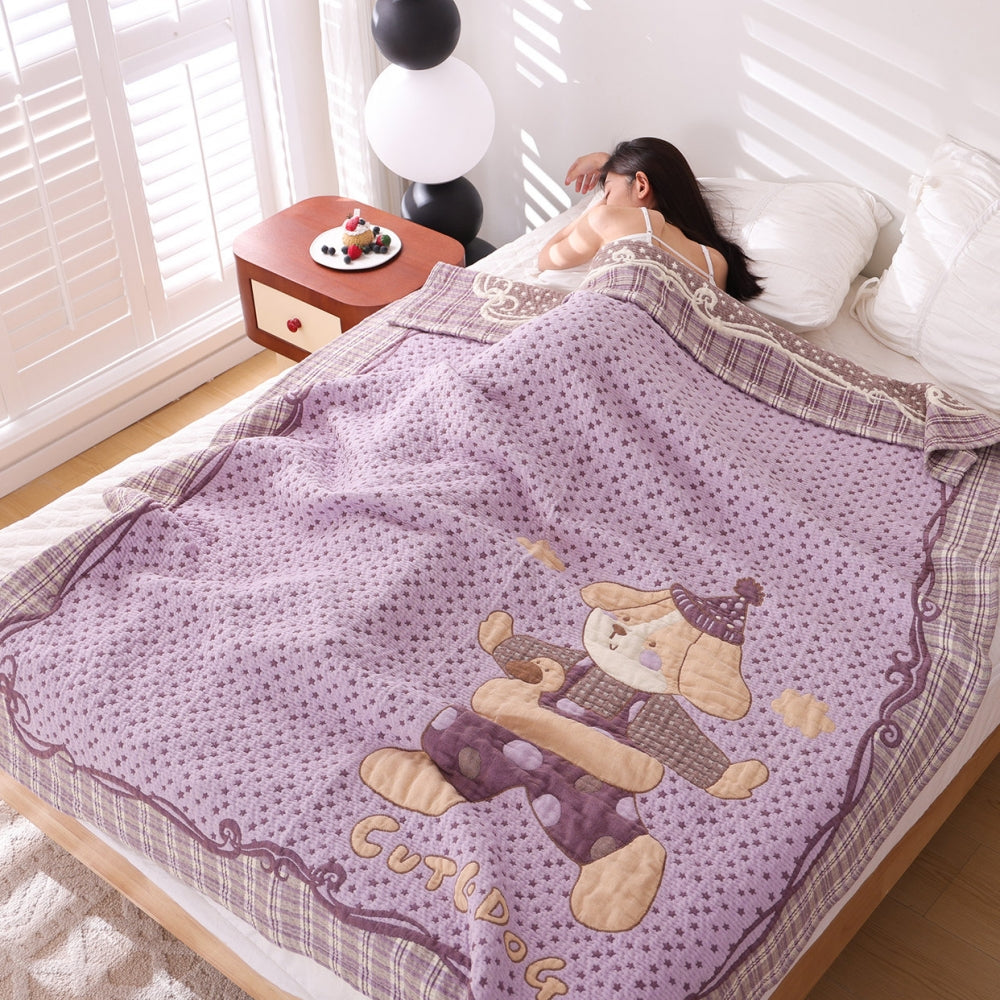 Cute Cartoon Animal Embroidery Pillow with Blanket